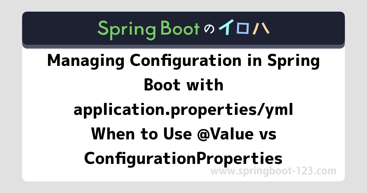 - Managing Configuration in Spring Boot with application.properties/yml - When to Use @Value vs ConfigurationProperties