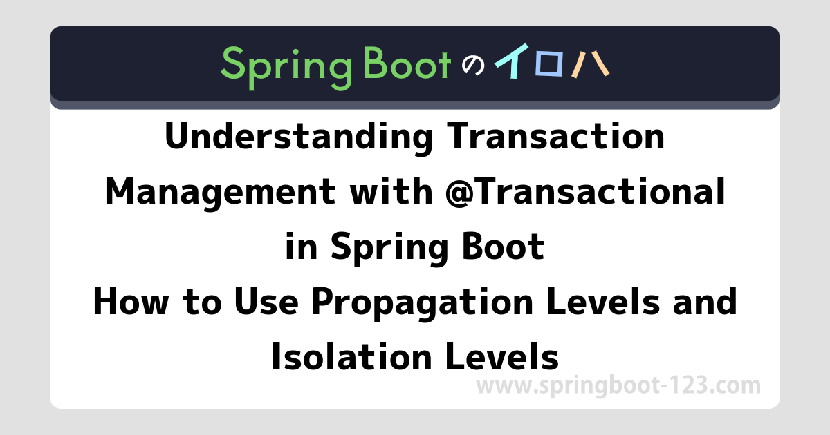 - Understanding Transaction Management with @Transactional in Spring Boot - How to Use Propagation Levels and Isolation Levels